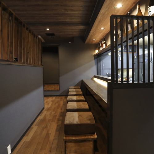 カウンター席は程よい距離感が魅力。木の香りが漂う上質な空間で、しっぽり一人飲みやデートにもおすすめ。店員との会話を楽しみながら、料理とお酒をじっくり堪能できる“大人の隠れ家”のような雰囲気です。